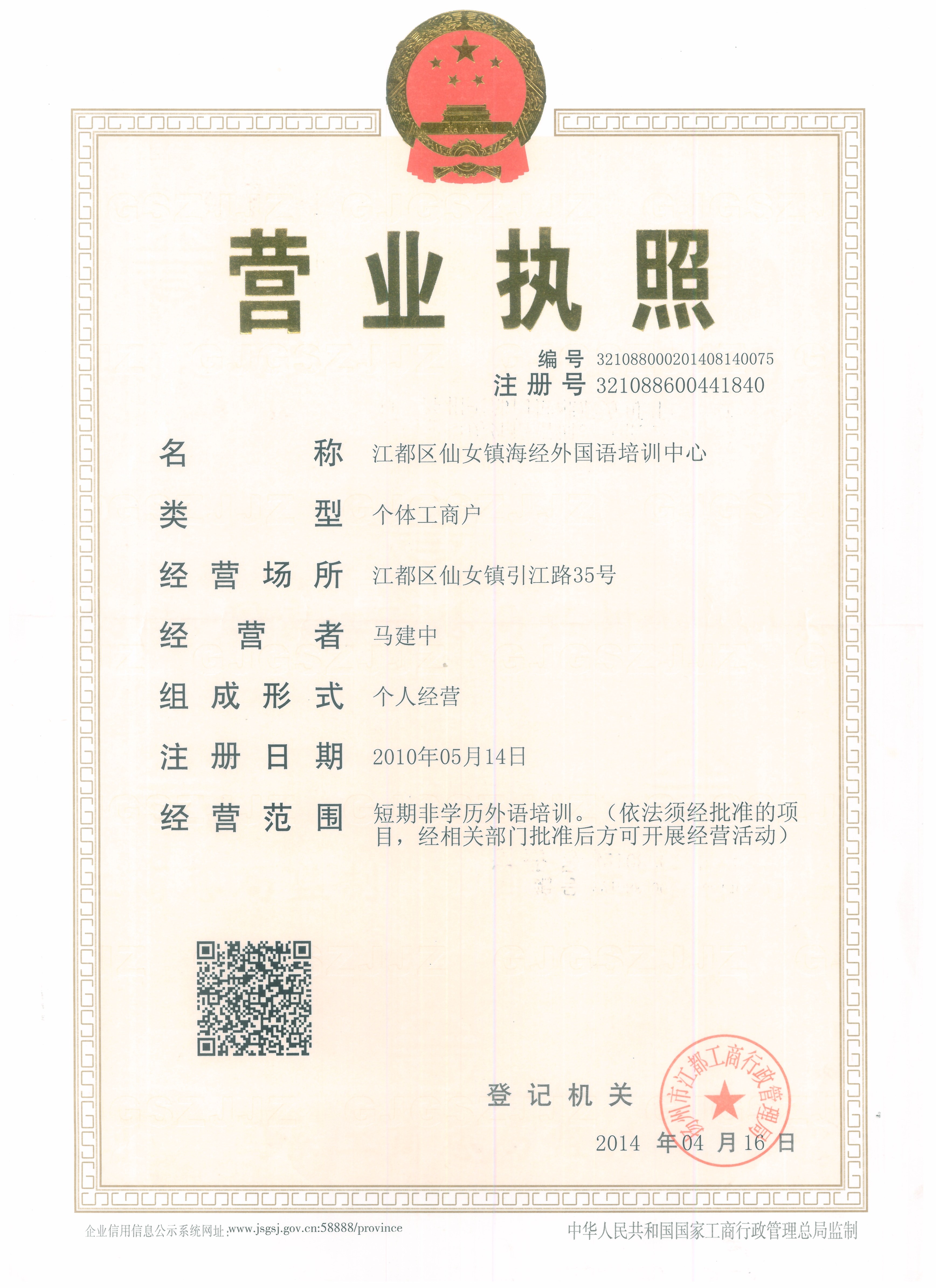 揚州市海経対外経済貿易有限公司は2004年に成立し、登録資本は600万元です。中国商務部の批准を受け、対外労務合作経営権を有する企業で、中国研修生協力機構成員で、中国対外承包工程商会会员です。日本へ赴く技能実習生派遣の業務を20年ぐらいも進めてきました。豊かな管理経験を積んでおります。本センターは外国語トレーニングセンターで、2010年5月に揚州市江都工商行政管理局の許可を得て成立したものです。もう10年あまりの歴史を持っています。今は日本へ赴く技能実習生、大学留学生、中学校、高校留学生派遣の業務を進めてきました。皆様の日本語能力、対外マナー、文化風俗、法律法規、安全健康などの訓練育成を大事にし、豊富な経験を積んでおり、有力な管理システムを構築しています。仕事のまじめな態度と行き届いたサービスで、お客様と社会各界からの好評を博しています。